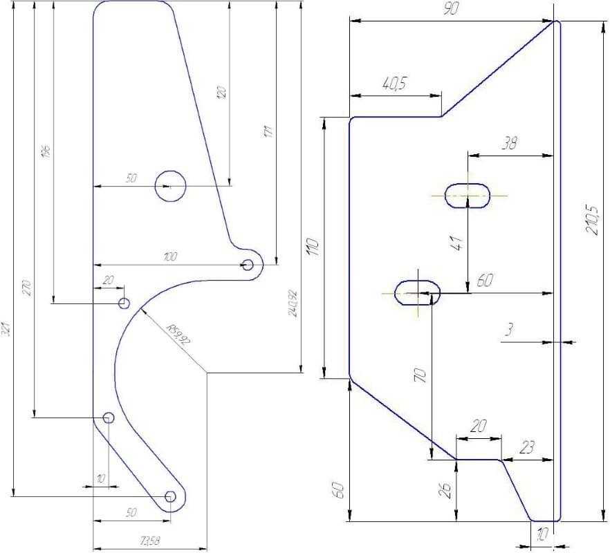 Внимательно изучите этот чертеж. Автор решил сделать своими руками кронштейн для переноса генератора. Деталь изготавливается из металла, толщина которого должна быть 4 мм, а ширина и длина – 80 мм. Чтобы собрать кронштейн, вам понадобятся детали от других отечественных авто: