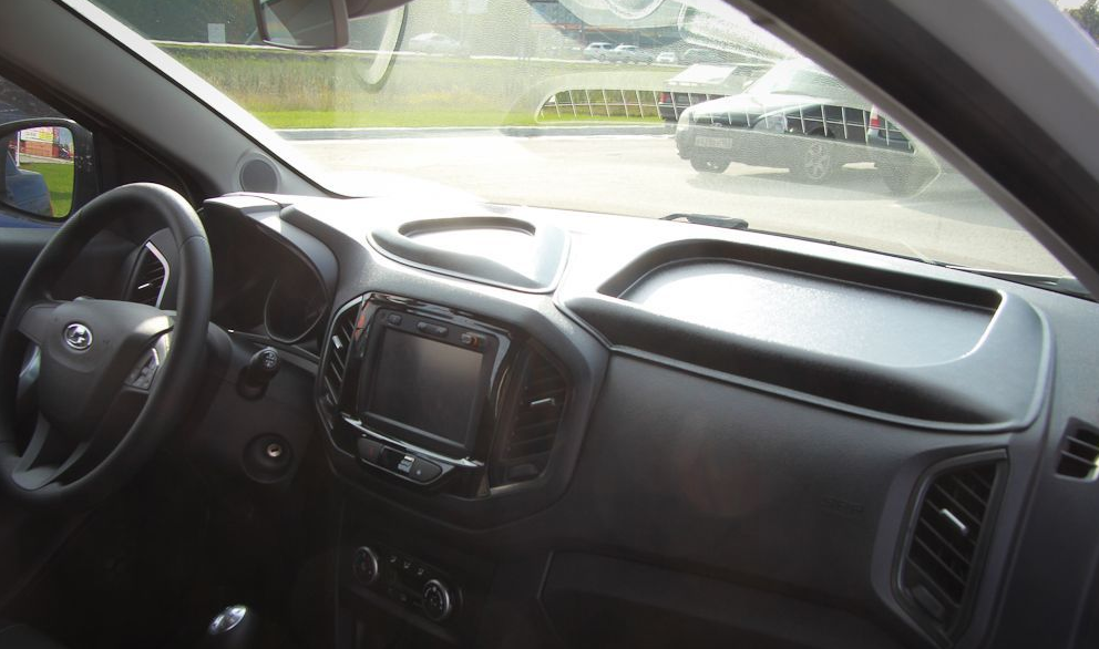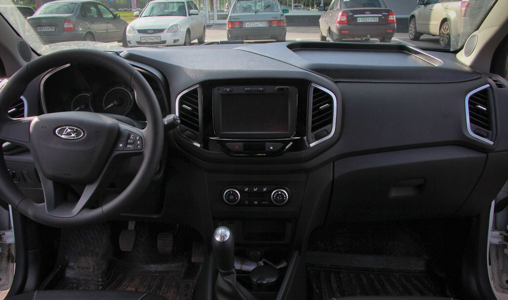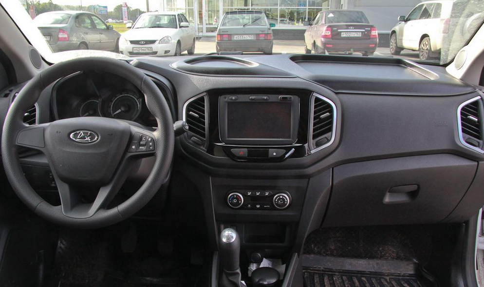 Сверху, над бардачком, отсутствует специальная полка, присущая последним моделям Лада. По середине торпедо Lada X-рей, располагается довольно немаленький бортовой компьютер, с 7-ми дюймовым экраном. Данный экран полностью сенсорный, с функцией TouchScreen. Снизу и сверху от него, имеются несколько кнопок управления. Сам же компьютер посажен в специальную ячейку, имеющую блестящий цвет.