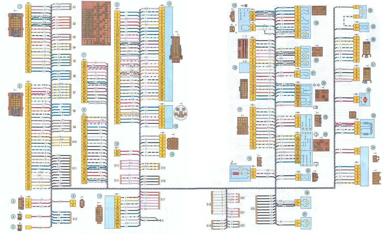 Блок с предохранительными устройствами, позволяющими защитить оборудование в электроцепи авто при возможных скачках напряжения. Соединительные разъёмы переднего, заднего жгута и жгута панели приборов находятся под торпедой с левой стороны. В частности, автомобиль получил: Три силовых агрегата разной мощности от 87 л. Электросхема соединения жгута панели приборов Ваз , Ваз , Ваз 1.