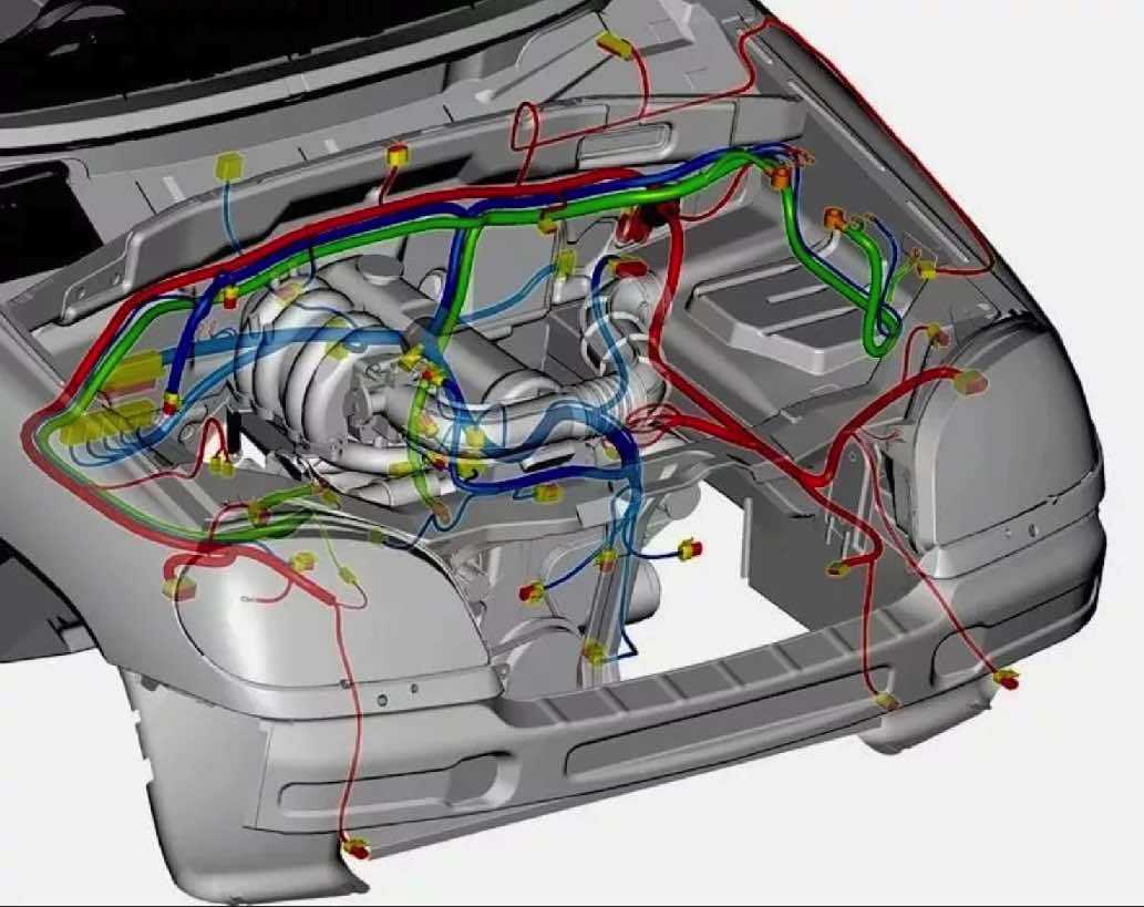 - Передняя часть – комплект кабелей соединяет все оборудование, расположенное в подкапотном пространстве авто.