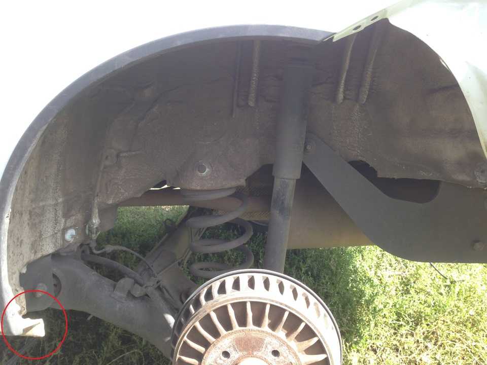 - Поддомкрачиваем машину, отвинчиваем болты, снимаем колесо, брызговик.