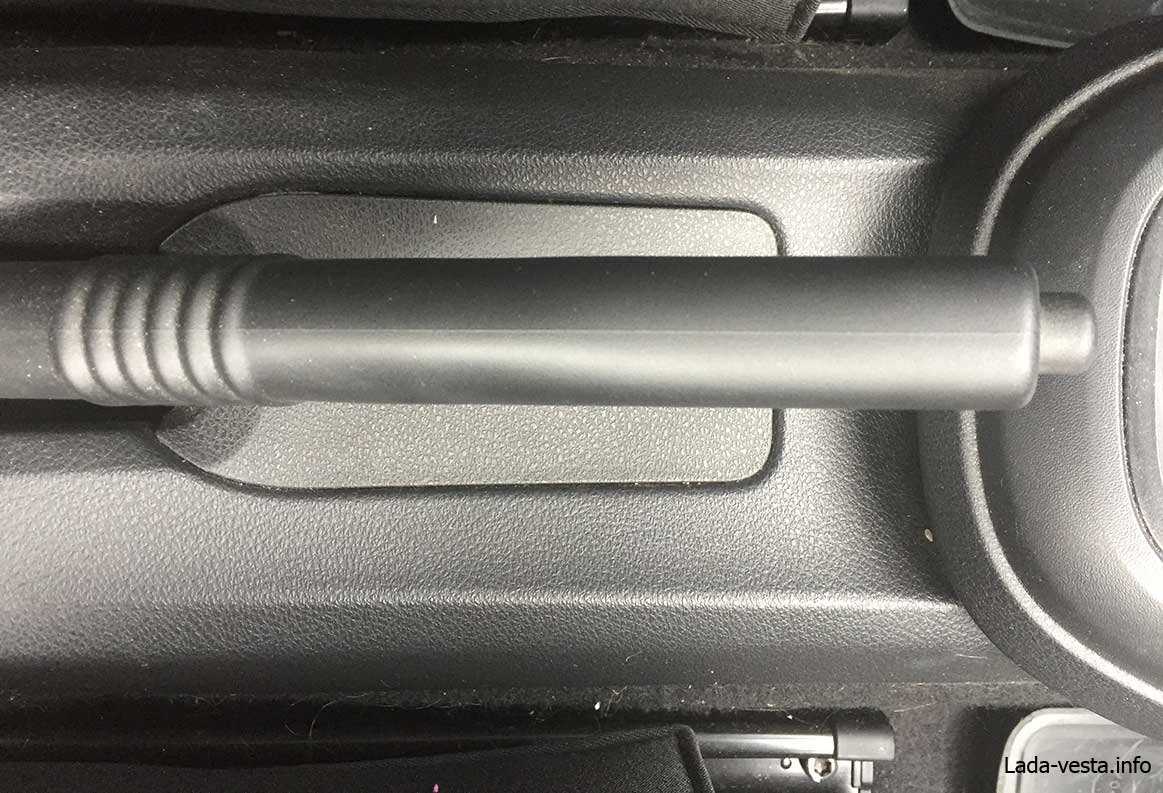 Практически на всех автомобилях с механическим ручным тормозом принцип подтягивания ручника сводится к регулировке одной единственной гайки, которая располагается недалеко от ручки стояночного тормоза. Такой же принцип используется и на автомобилях семейства Лада Веста.
