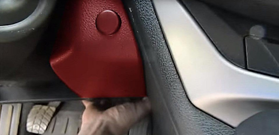 Работать лучше начинать с левой стороны. Сперва потребуется добраться до блока предохранителей, сняв пластиковую крышку, что его закрывает. Нужно провернуть 3 пластмассовые рукоятки, которыми крышка фиксируется в нижней части, после чего убрать фиксатор сверху.