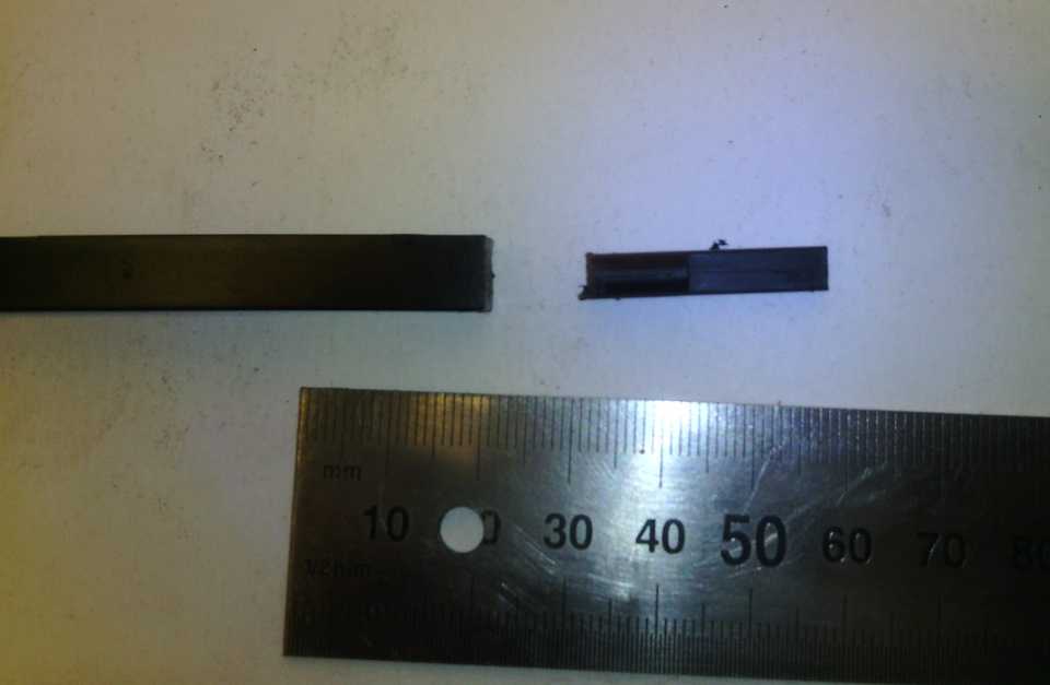Обломанная ось замка бардачка выглядит следующим образом. Ее облом приводит к перекосу крышки и увеличению зазоров относительно основной части панели приборов.