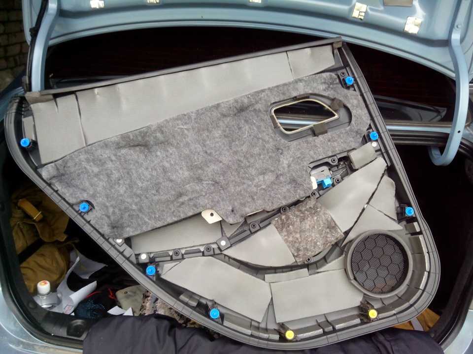 На этом шумоизоляцию дверей заканчиваем и монтируем их в исходное состояние.
