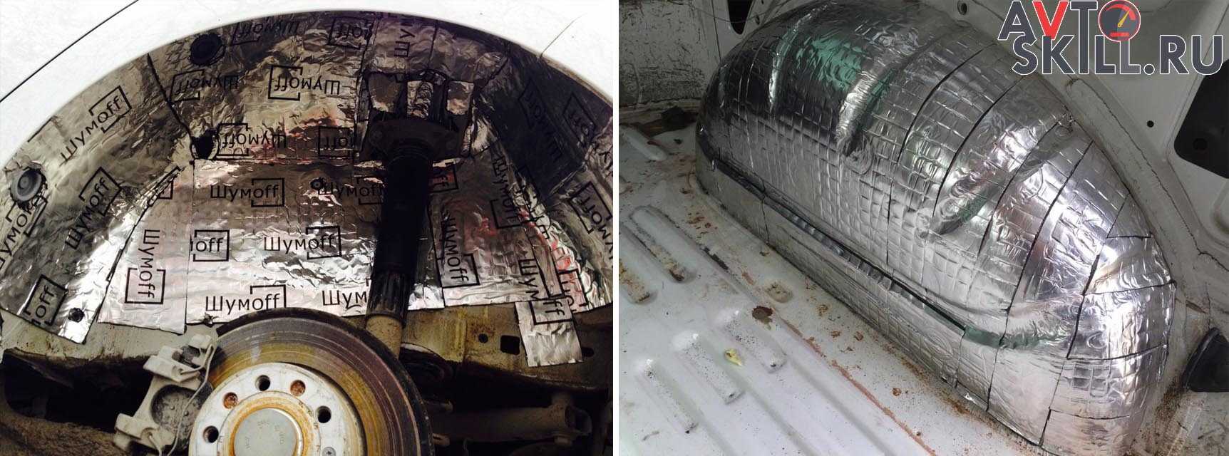 Арки колес являются основным и самым сильным источником звука во время езды. Во время езды из под колес отлетают камни, песок, щебень, которые бьются об колесные арки, вызывая грохот. При качественном подходе к работе, шум можно снизить на 30% — 50%.