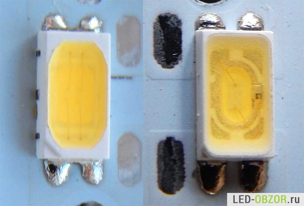 Чипов (кристаллов) в одном светодиоде может быть много. Если элемент не имеет слоя люминофора (RGB – цветной), то количество кристаллов можно подсчитать.