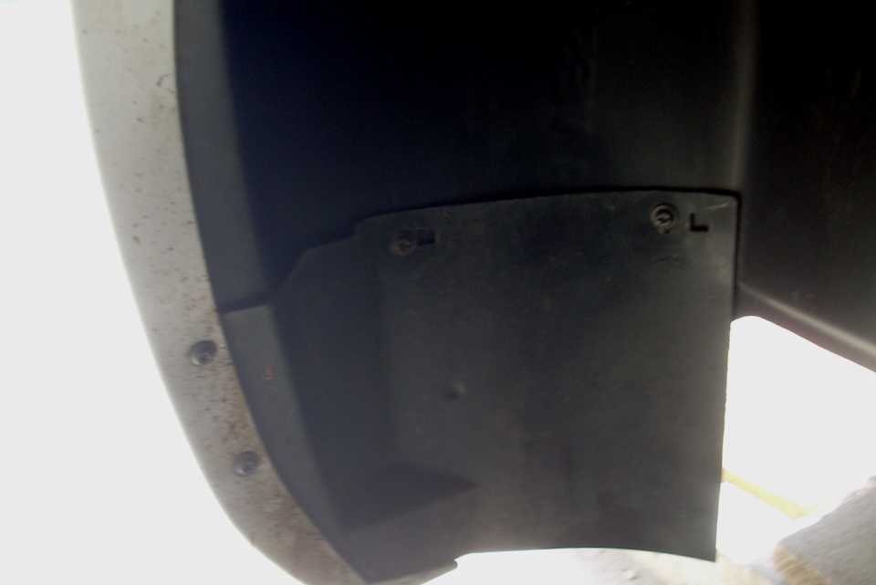 Первым делом снимаем брызговик, который закреплен саморезами к бамперу, иначе в последствии он будет мешать нам при снятии подкрылка. Сам подкрылок удерживается пластиковыми винтами расположенными по его периметру, их необходимо открутить до начала демонтажа. Как видите крепежных элементов на подкрылке мало, однако, есть конструкционные особенности, которые помешают снять задний подкрылок. Перед задним правым подкрылком проходит заливная горловина топливного бака, разбирать всю систему ради снятия одного подкрылка нецелесообразно, поэтому чаще всего подкрылок просто надрезается в необходимом месте, как это показано на фотографии ниже: