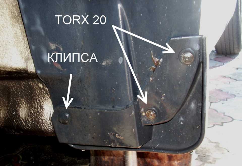 Перед началом работы внутреннее пространство арки колеса надо хорошо отмыть от грузи и просушить. Если после мойки выяснилось, что есть поврежденные коррозией места, то их надо обработать, загрунтовать и нанести антикоррозийный состав. И только после этого устанавливать подкрылки.
