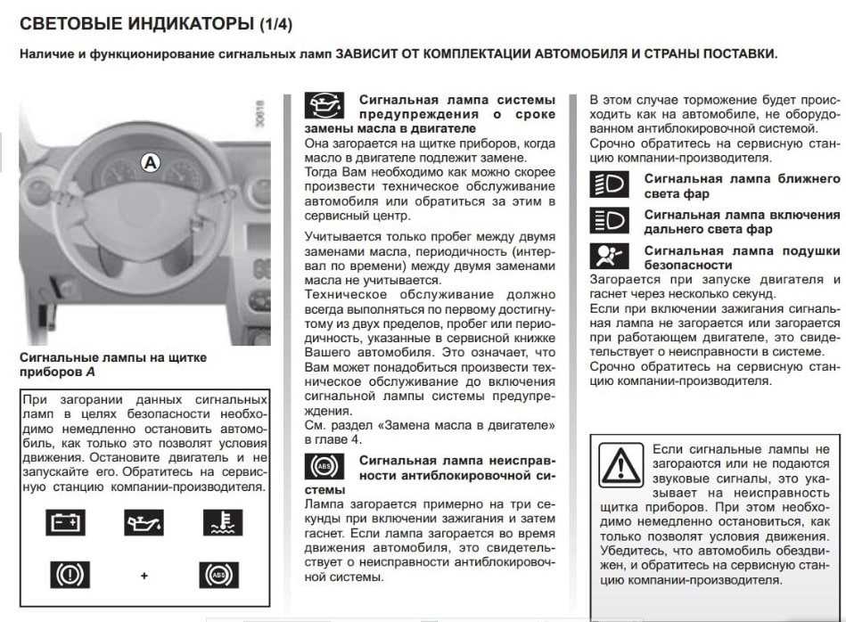Решается данная проблема простой заменой этих датчиков. Особое внимание следует обратить на индикатор в виде двигателя, его еще называют чек, он отвечает за систему двигателя, во время пуска силового агрегата он должен загораться и сразу гаснуть, если он продолжает гореть, то это предупреждает что имеются неисправности в системе двигателя. Если данный индикатор начинает мигать это может быть связанно с нестабильной подачей искры, поэтому желательно снизить обороты. Как видите панель достаточно информативная, и если знать за что отвечает каждый элемент, то можно довольно быстро определить причину неисправности, и чтобы понимать обозначение, ниже представлен список значков с описанием: