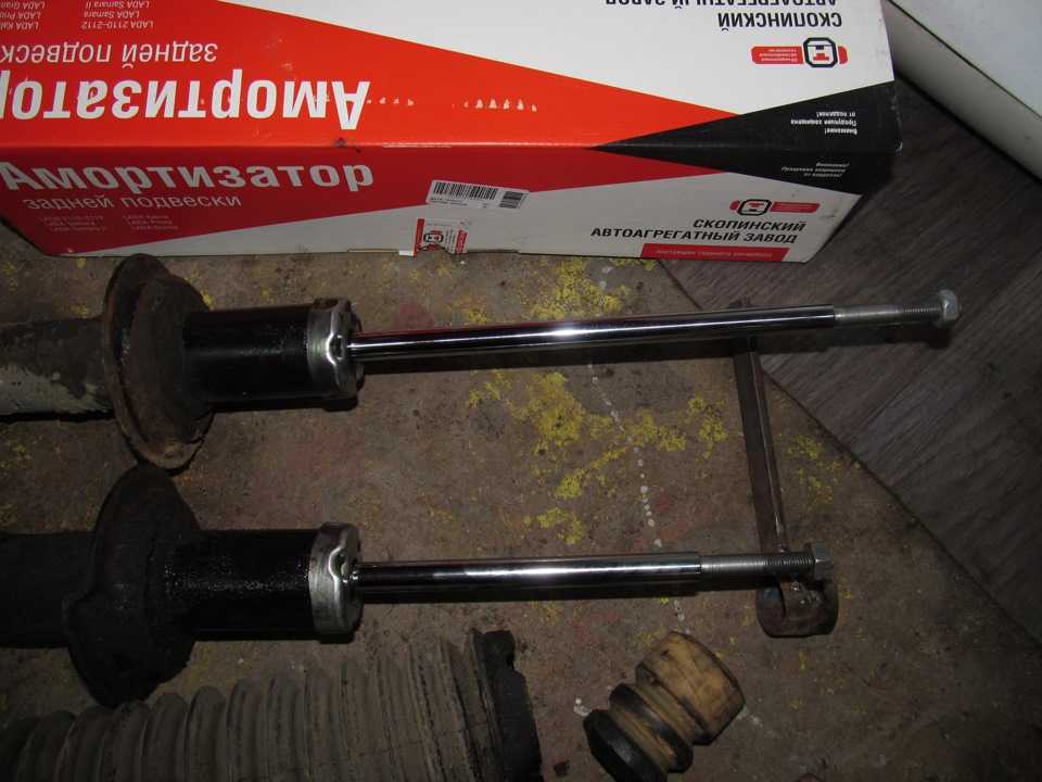 Менять задние амортизаторы не сложно. Потребуются ключ (два штуки) на 19, и съемник для задних амортизаторов. Вместо съемника можно применить ключ на 17 Z-образный и ключ на 6 чтоб придерживать шток амортизатора.