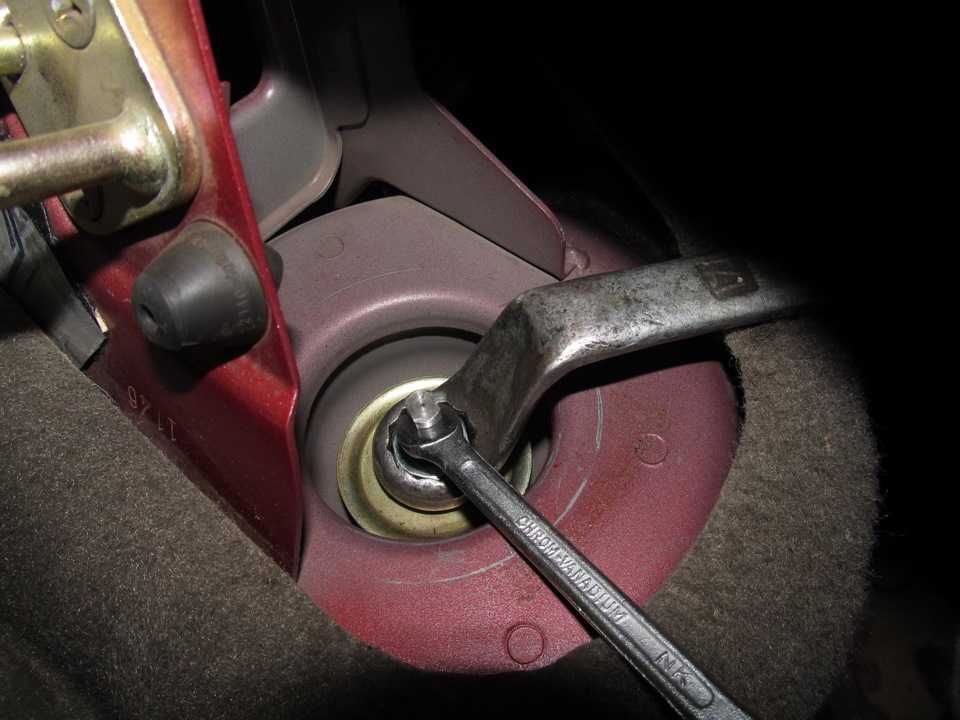 4. Отверните гайку верхнего крепления амортизаторной стойки.