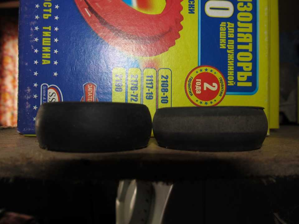 К ним докупил пыльники от ВАЗ 2108, резиновые шумоизоляторы на пружины, чашки, отбойники. Пружины оставил заводские. Кстати мне их подарил Степан Кутузов абсолютно бесплатно. Опоры (в простонародии бублики) шли в комплекте с амортизаторами