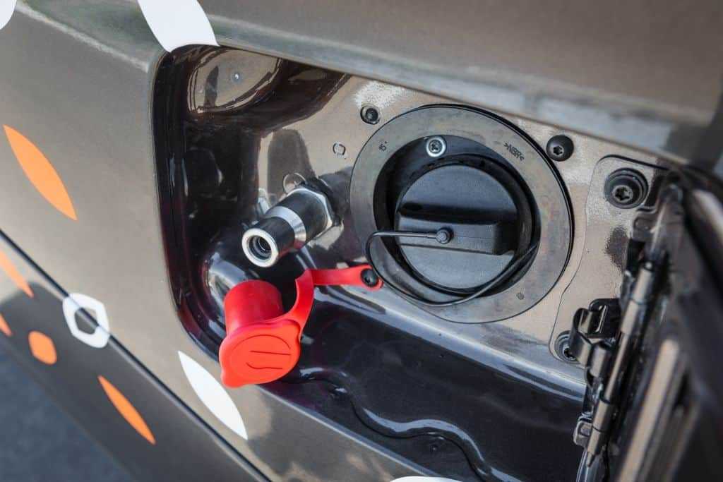 Газовый баллон, металлокомпозитный, инженеры спрятали в багажном отделении, сразу за спинкой заднего «дивана». Он рассчитан на девяносто литров топлива, но метана туда можно закачать до восемнадцати кубических метров. Газовый баллон оборудован интегрированным в него предохранителем и клапаном, которые исключают вероятность того, что корпус баллона треснет или его разорвет. Также, если в случае ДТП будет повреждена газопроводная линия, метан не сможет вырваться наружу. Кстати, метан гораздо безопаснее пропана или бутана, поскольку в случае утечки он не накапливается в одном месте, а рассеивается в атмосфере, поэтому взорваться он попросту не сможет — для взрыва нужна определенная плотность газа в одном месте. А вот бутан или пропан могут взорваться.