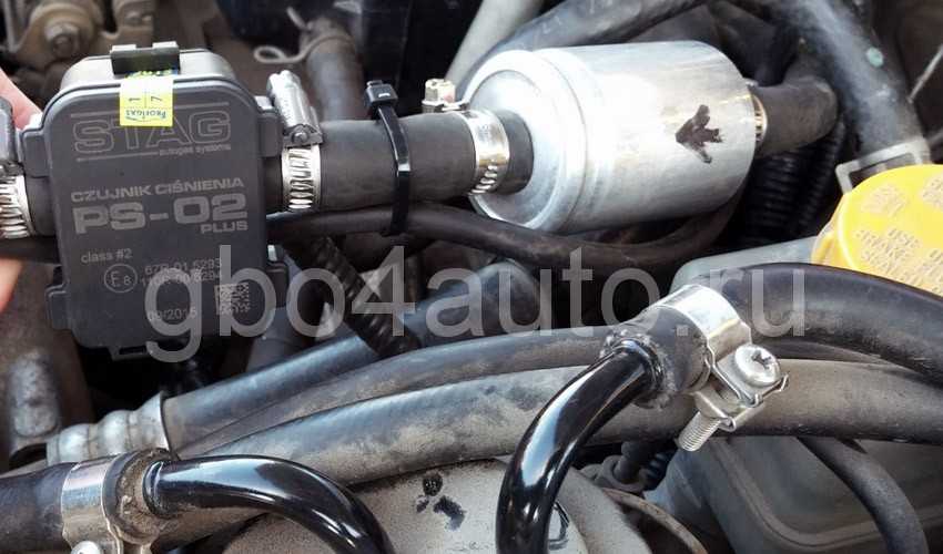 Датчик давления газа устанавливается перед форсунками и после фильтра тонкой очистки, который, в свою очередь, установлен после редуктора-испарителя. Почему специалисты рекомендуют ставить именно после фильтра тонкой очистки? Это связано с тем, что: