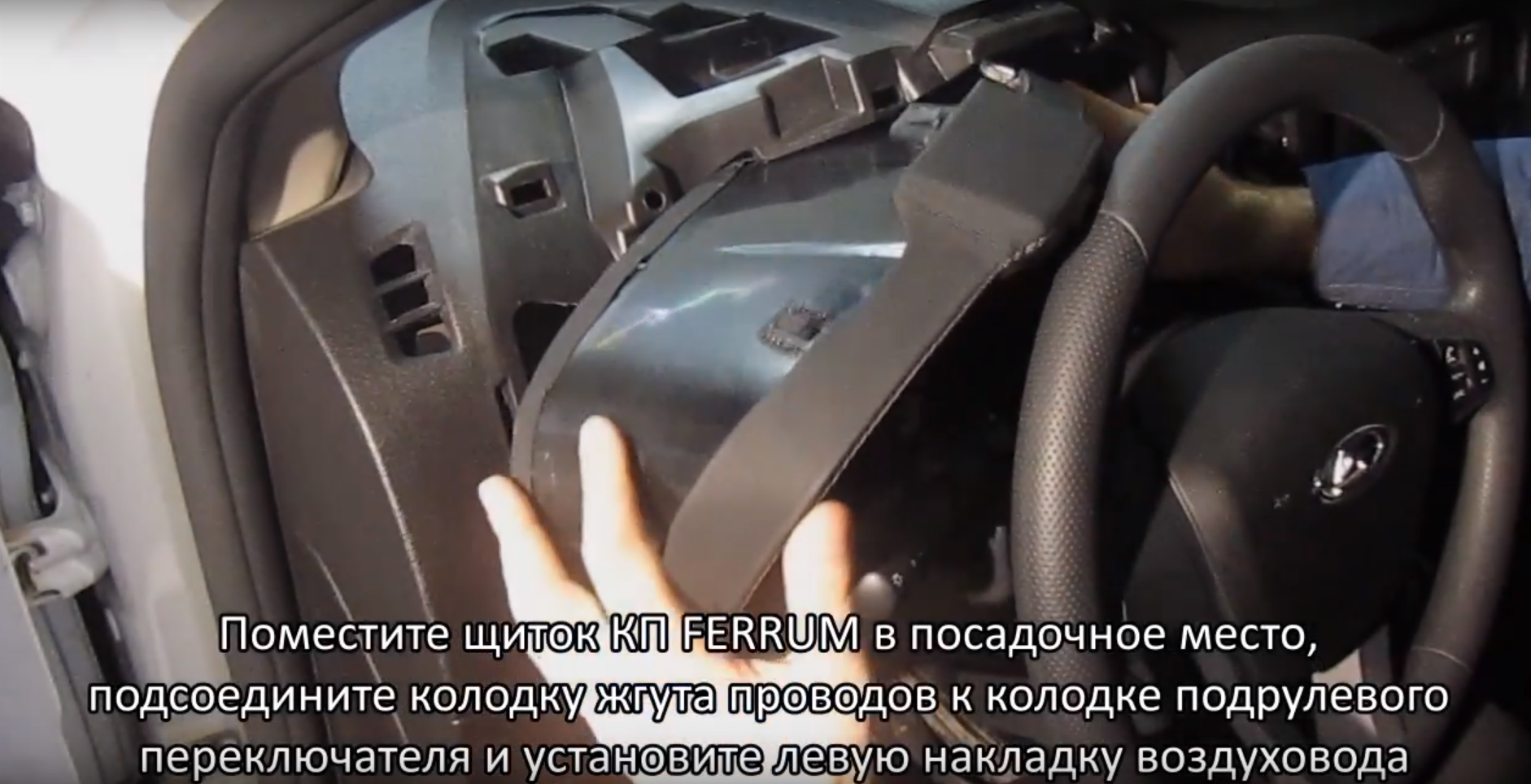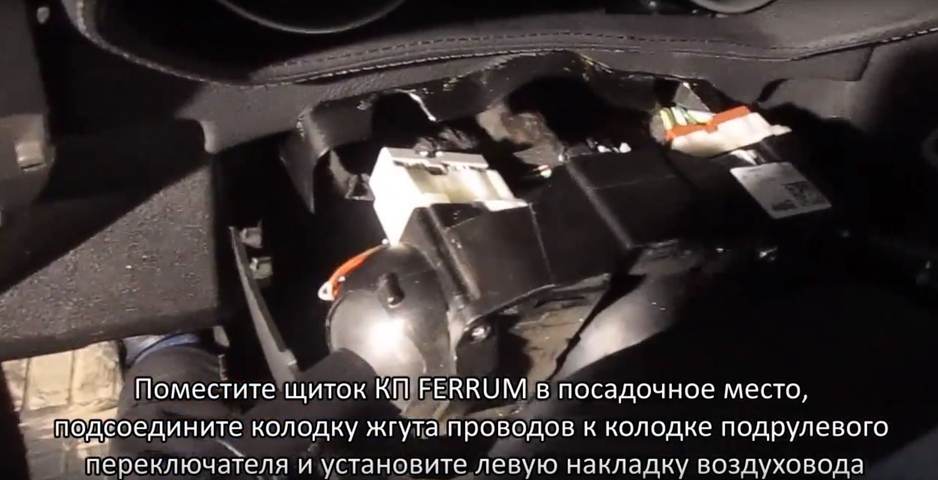 Следующий шаг – вставить щиток GF 890 в посадочное место, а затем подключить его к разъему подрулевого переключателя.