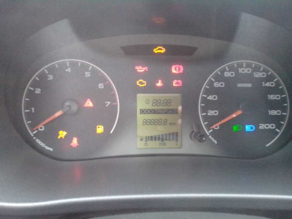 - Индикатор неисправности системы, которая управляет мотором. Эта лампочка загорается оранжевым после включения зажигания и гаснет, когда двигатель начинает работать. Если она будет гореть при работающем моторе, то это означает, что двигатель надо остановить и устранить причину неисправности. Работа двигателя с загоревшимся индикатором запрещена.