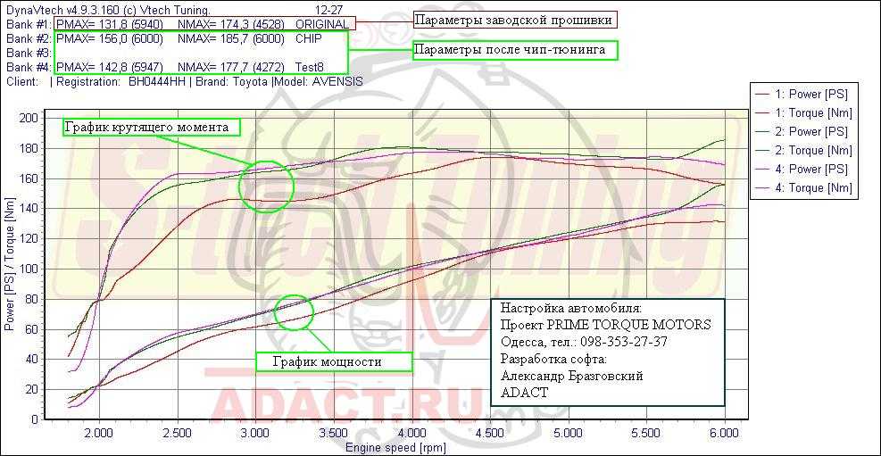 Изменения производительности Тойоты Авенсис 2.0 АТ 2008 года: