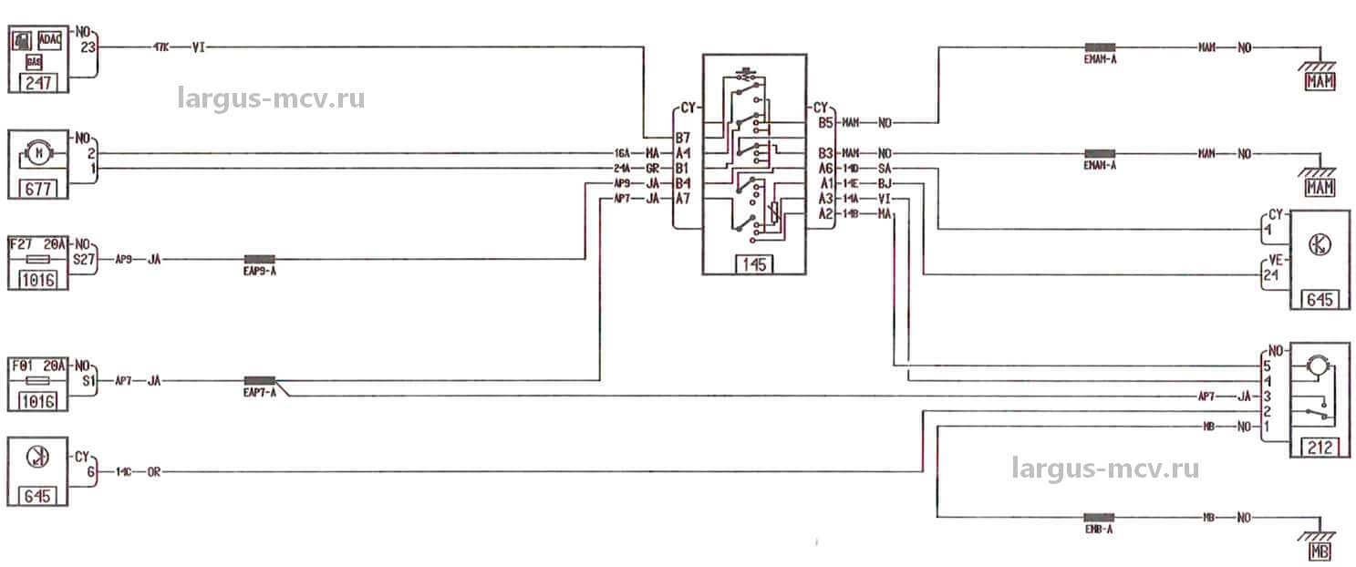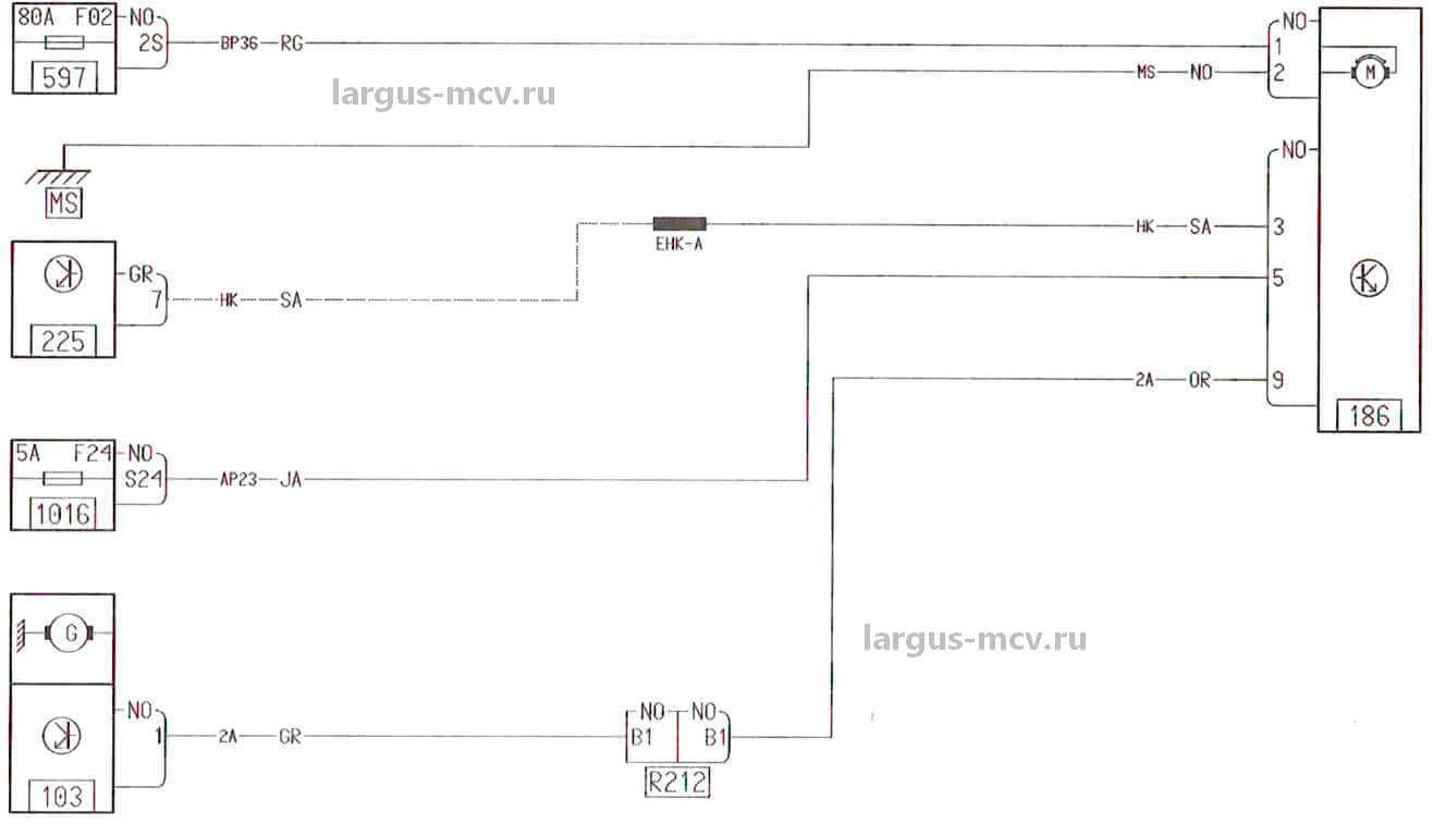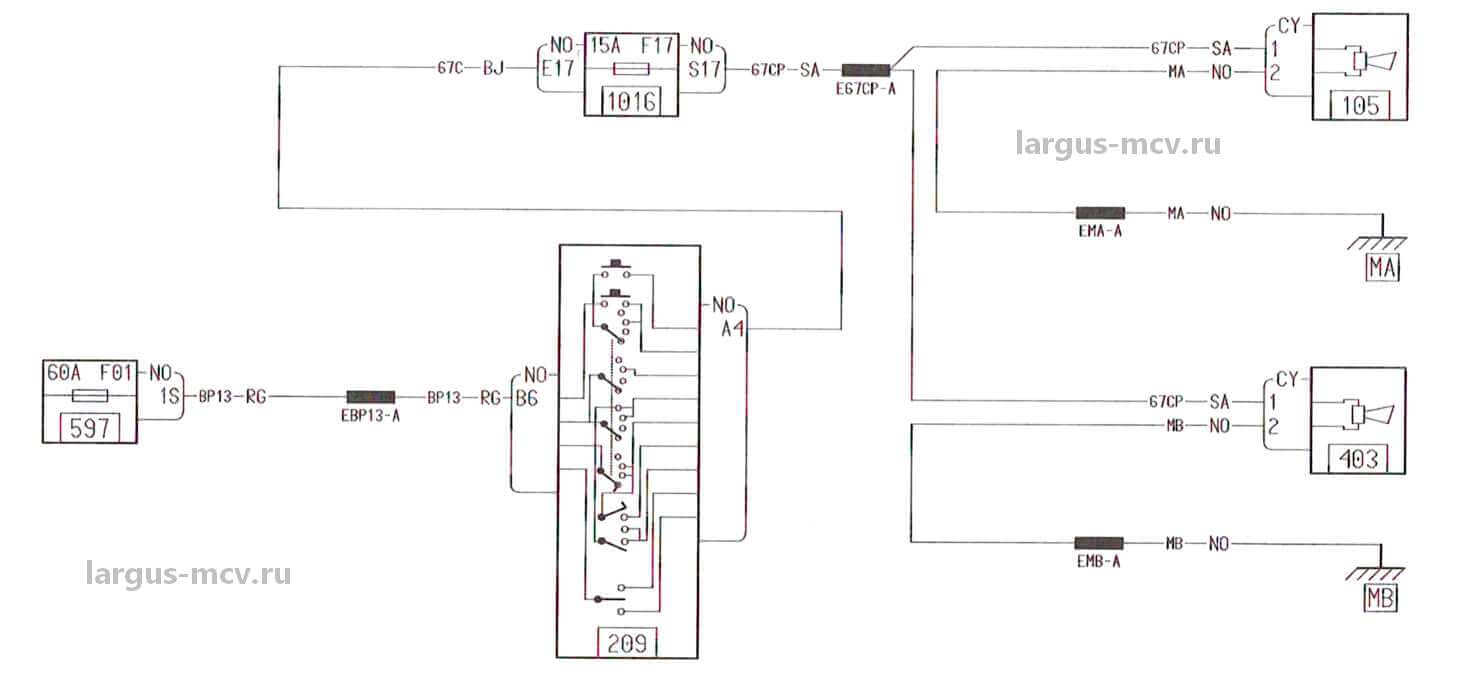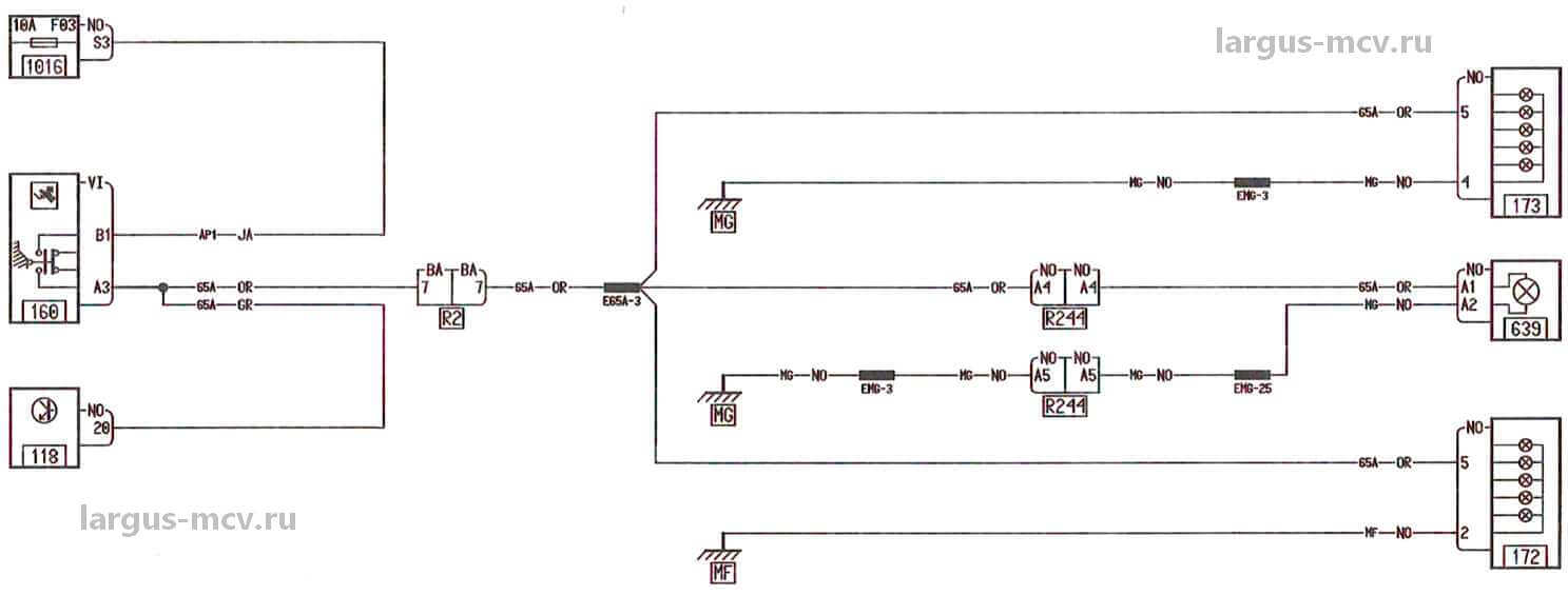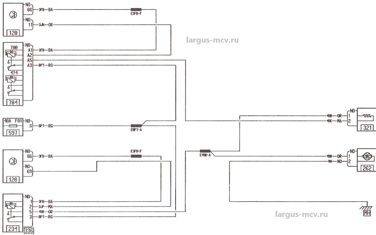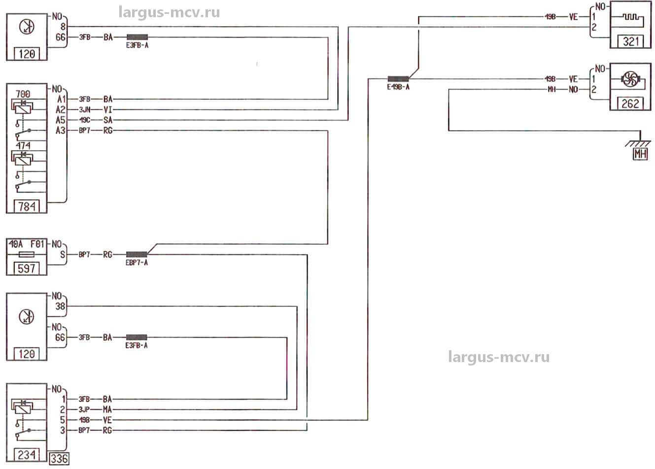 | 597-3 | F1 (50 A). F2 (25 А) | Переключатель наружного освещения, блок предохранителей в салоне |