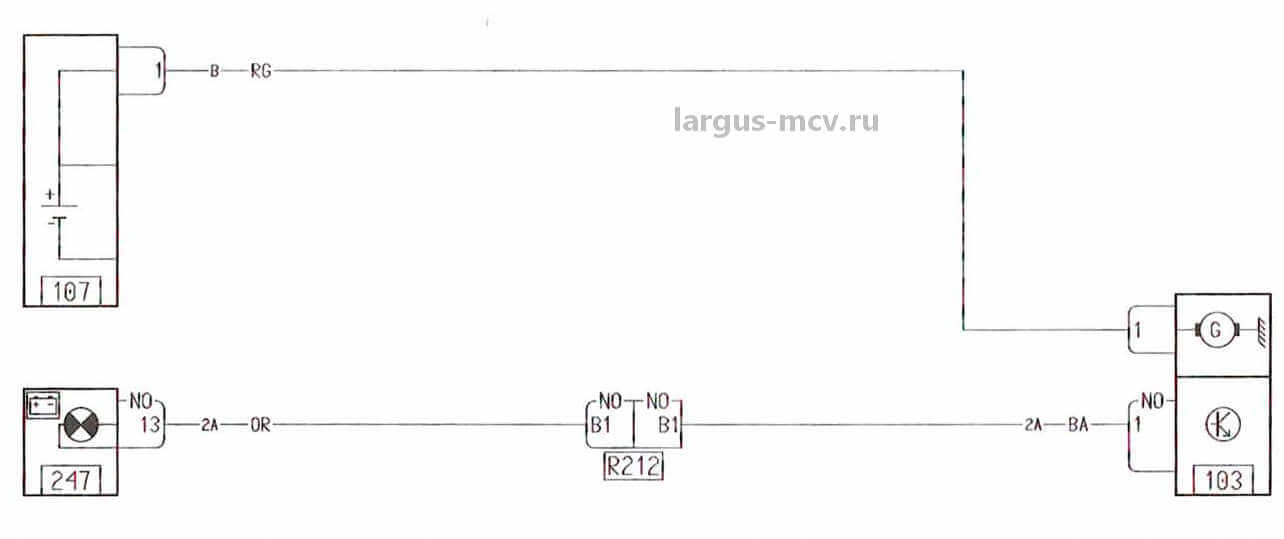 Схема включения генератора, стартера, АКБ (двигатель К7М710)