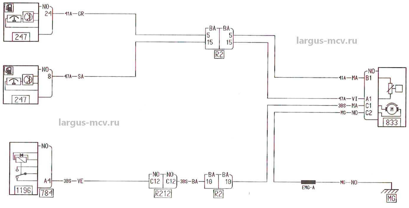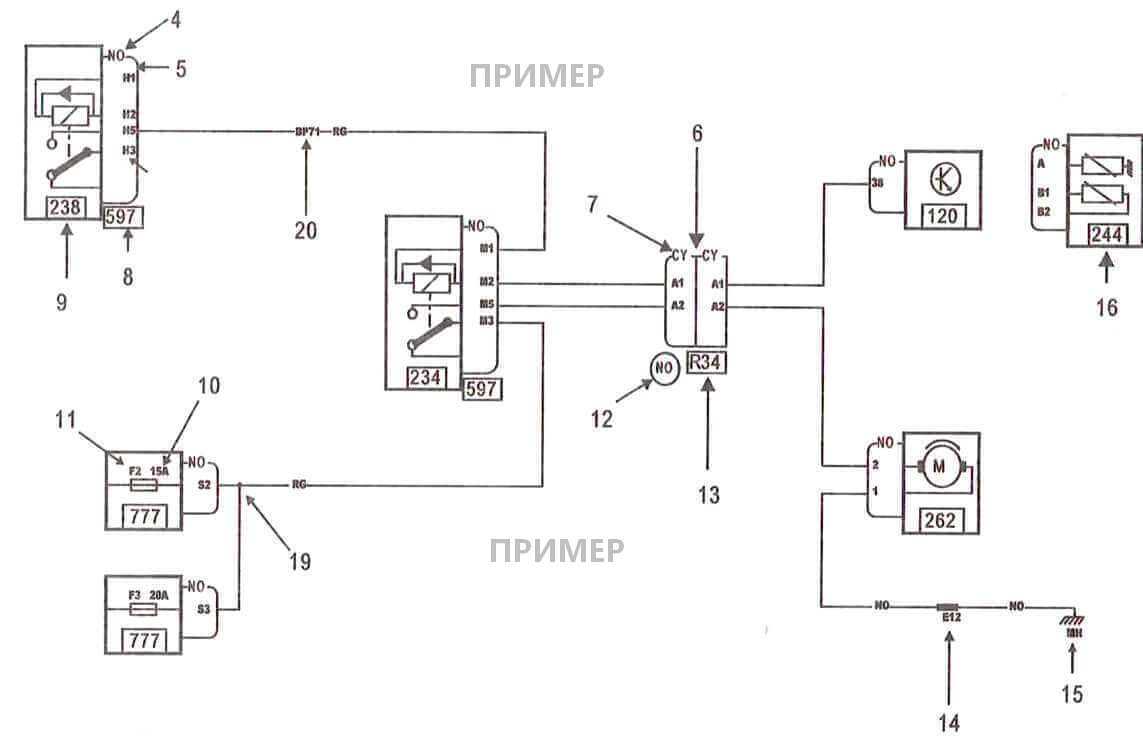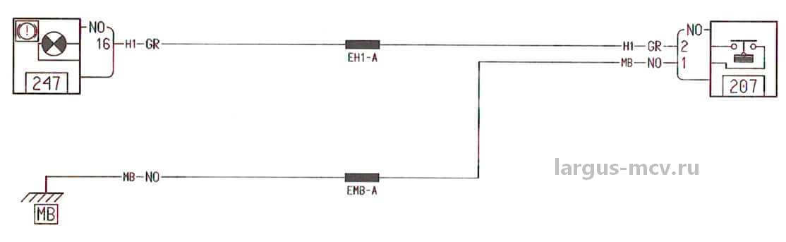 | к1 | Реле большой скорости вентилятора системы охлаждения (для автомобиля с кондиционером) |