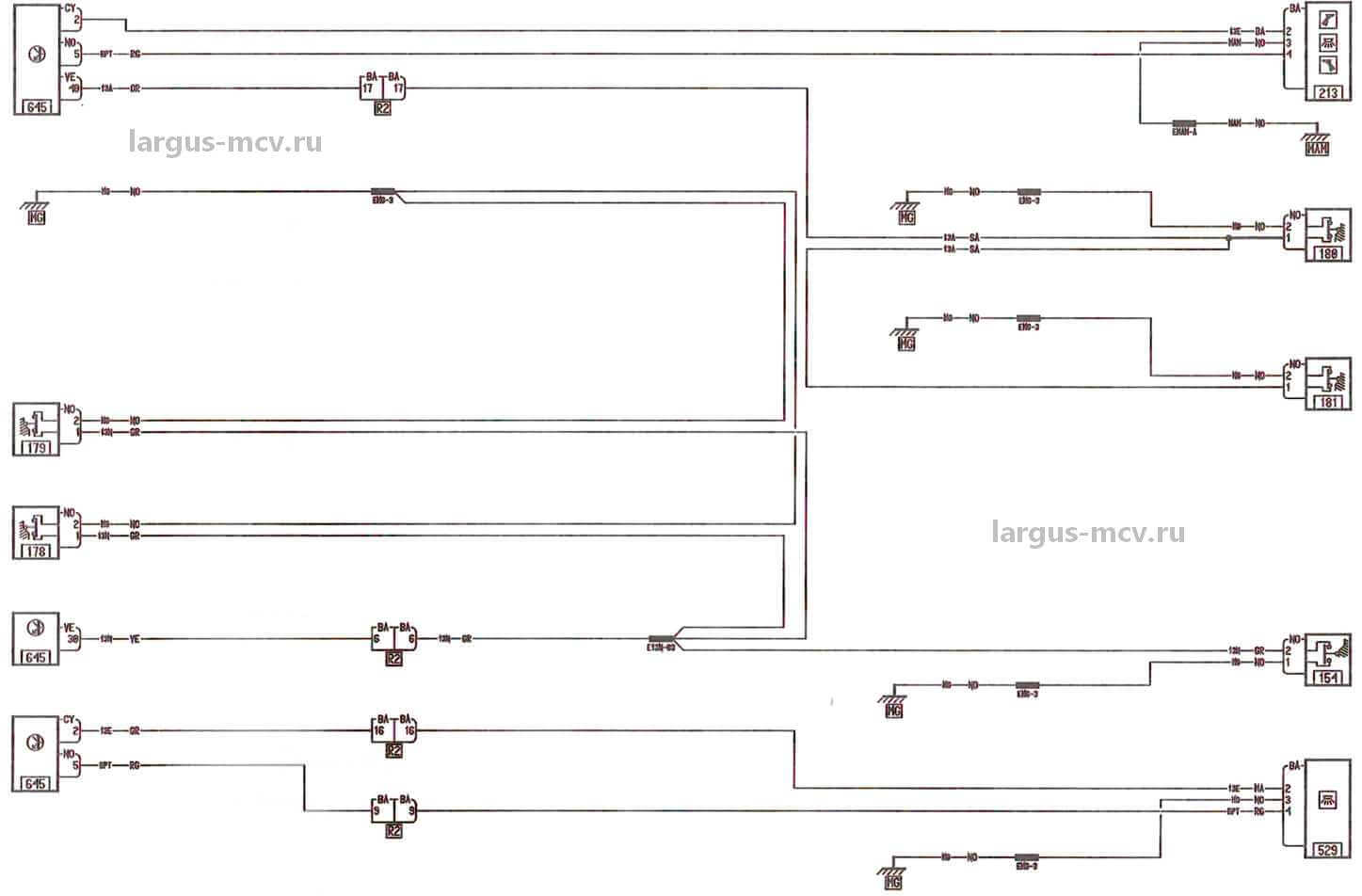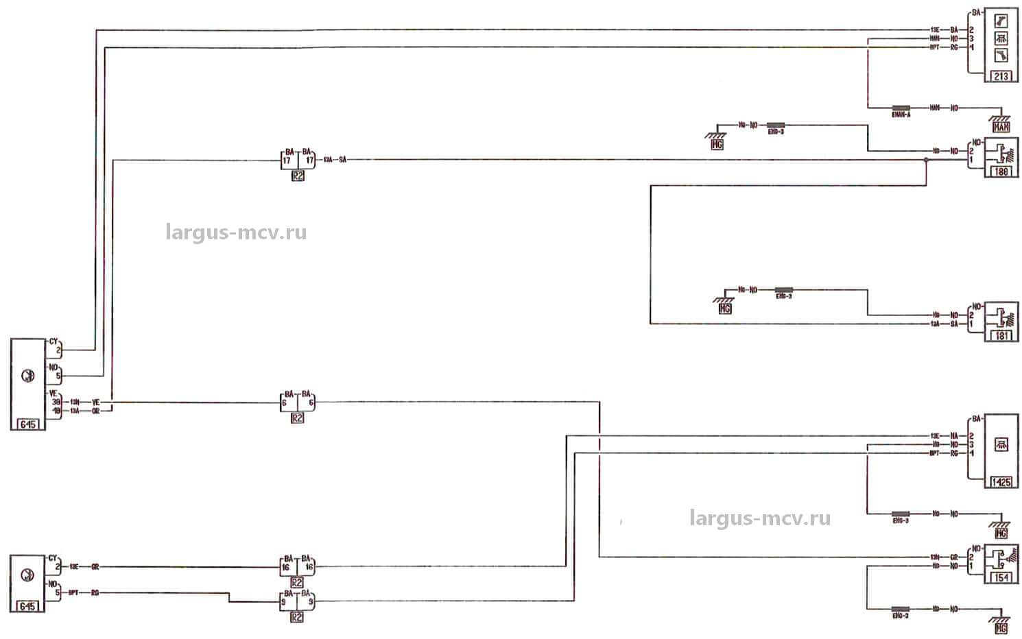 Схема управления электроприводами замков дверей (замки с функцией «центральный замок» и ДУ)