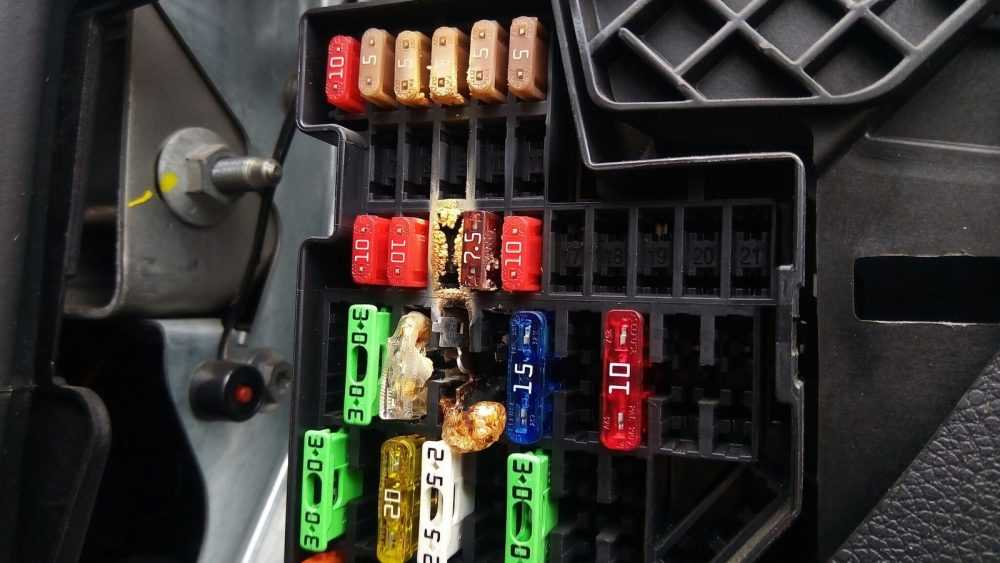 Взять новый предохранитель можно под крышкой блока. Необходимо выбирать его по значению в Амперах. Если водитель нашел больший ампераж, то не нужно подобную перемычку устанавливать в освободившееся гнездо. Последствиями могут негативно сказаться на оплавлении проводки.