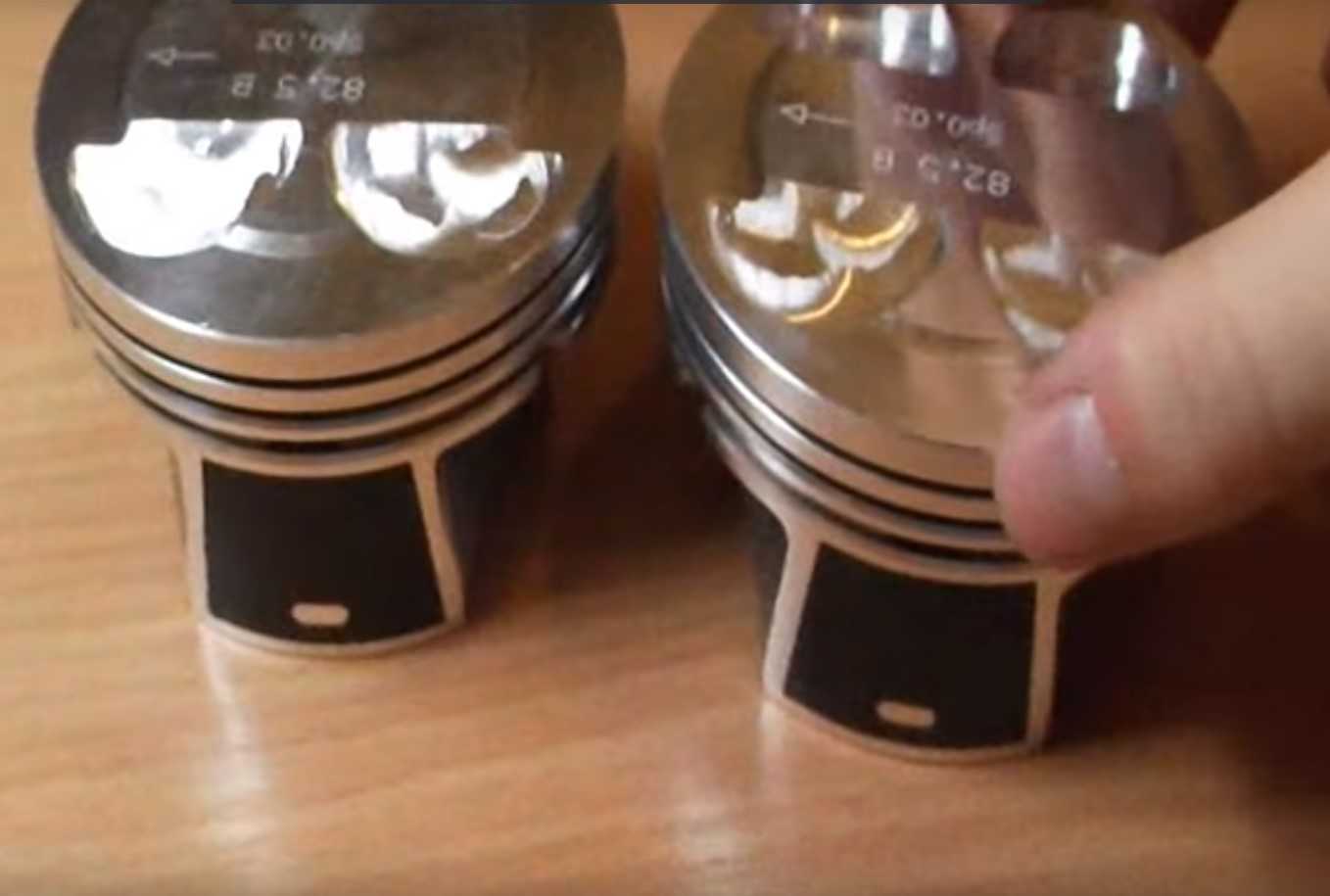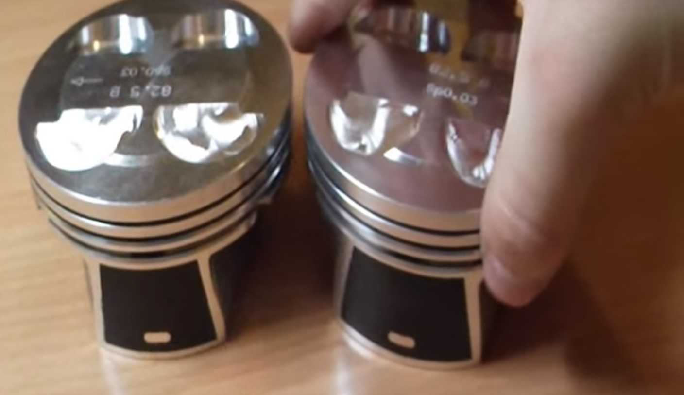 Такие поршни представляет из себя почти точную копию обычного поршня автомобиля, только с одной отличительной чертой – в верхней части вместо обычного «зеркала» появляются специальные углубления, для увеличения срока службы как некоторых частей ГРМ, так и самих поршней.