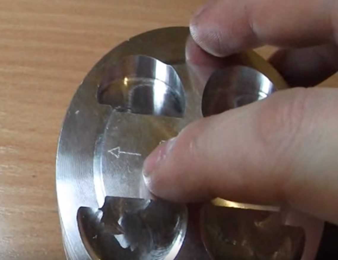 Однако если рассказать технически и литературно правильно, то получается что – в верхней части на поршне присутствуют несколько проточек. Их количество может быть разное – от 2 до 4 штук. Именно благодаря этим проточкам эти два элемента двигателя не встречаются. То есть правильно назвать — поршень с проточками.