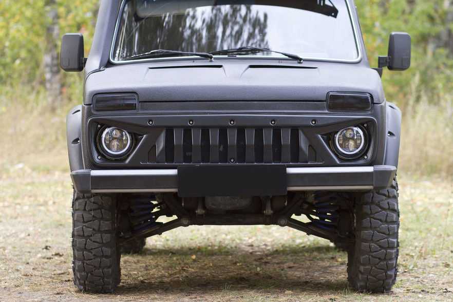 Тюнинг экстерьера является неотъемлемой частью доработки «Нивы». И поскольку наша задача — сделать машину более внедорожной, первым делом следует позаботиться об установке кенгурятника. Данная деталь позволит защитить кузов автомобиля и его фары от различных ударов. Кстати, светотехнику тоже можно доработать. Спереди установить стальные решётки, а вместо серийных стоп-сигналов установить тюнингованные варианты. Но на этом мы не завершаем процесс стайлинга отечественного внедорожника