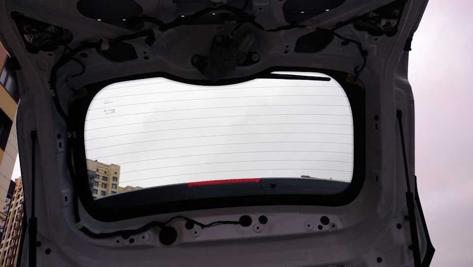 - Для получения доступа к рассматриваемому элементу следует провести разборку задней дверки багажника. Обшивка крепится на болтах и клипсах, поэтому с разбором не возникает проблем. Если используется неоригинальная камера, то приходится изменить посадочное место для нового устройства.
