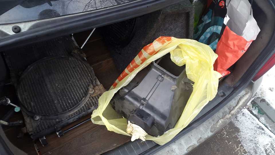 Снять поглотитель (обычно он находится в правой стороне двигателя, в районе установки элементов воздушной системы, в частности, воздушного фильтра).