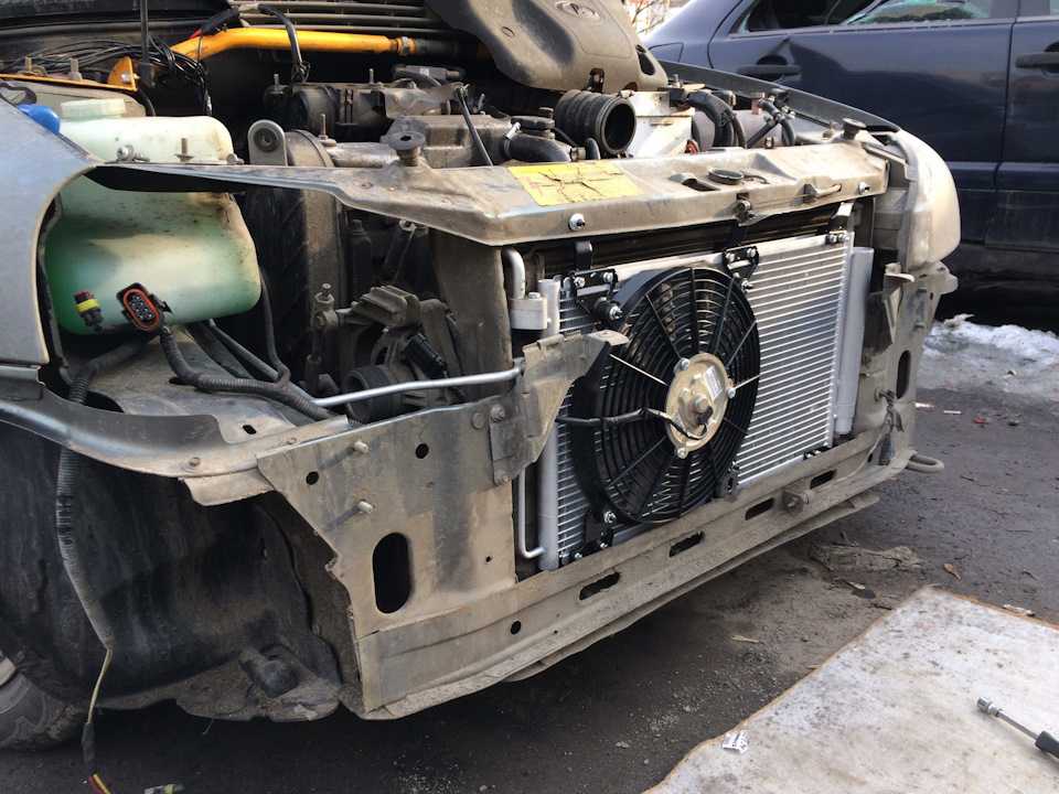 По весне начал потихоньку ставить. Начал с простого — с подкапоткой. Скинул бампер, фару, закинул радиатор