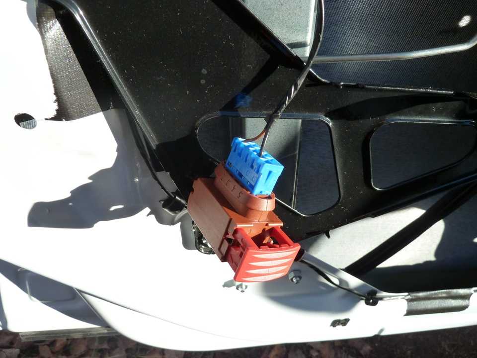- Отсоединяем колодку с проводами от блока управления стеклопакетом, заводим на Пин № 2 и Пин №7 сторонние контакты. Надеваем колодку, прокладываем провод по штатным каналам.