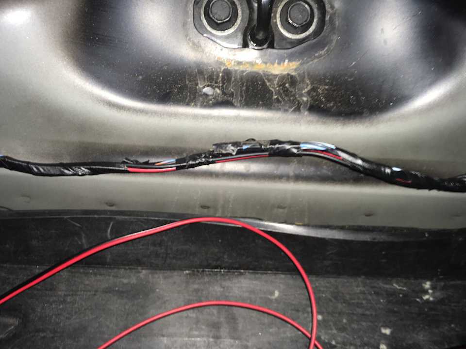Когда подключение к проводам завершено, проводку протягивают по левой стороне машины – сперва в багажник, потом через него к правой стороне и в конце к установленному приводу.