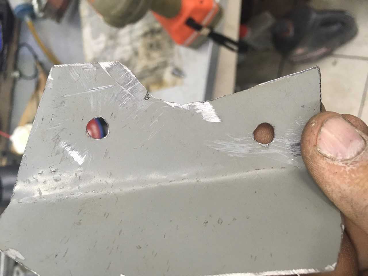 Когда отверстия вырезаны, можно начинать изготовление самодельного кронштейна. Он делается из куска листовой стали с 2-мя просверленными отверстиями.