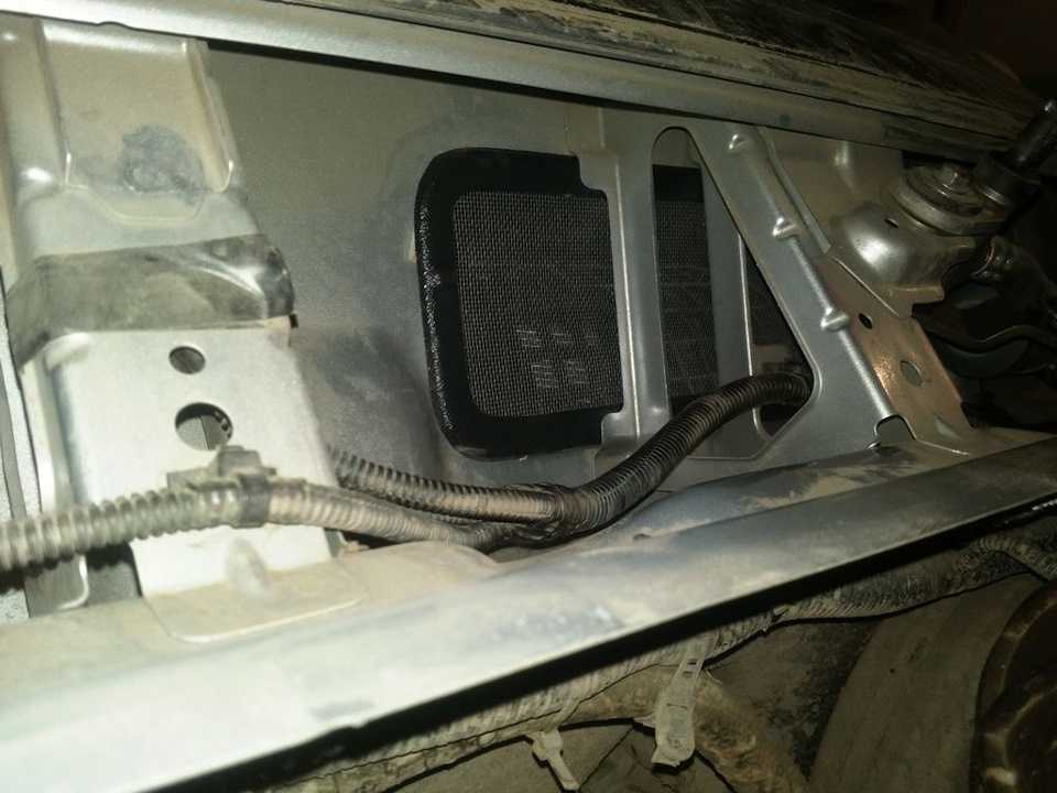 Когда разбор закончен, нужно поставить саму сетку. Заводить сетку рекомендуется с водительской стороны, и располагать ровной боковиной со стороны пассажирского сиденья. Когда сетка воздуховода окажется на своем месте, она зафиксируется магнитами.