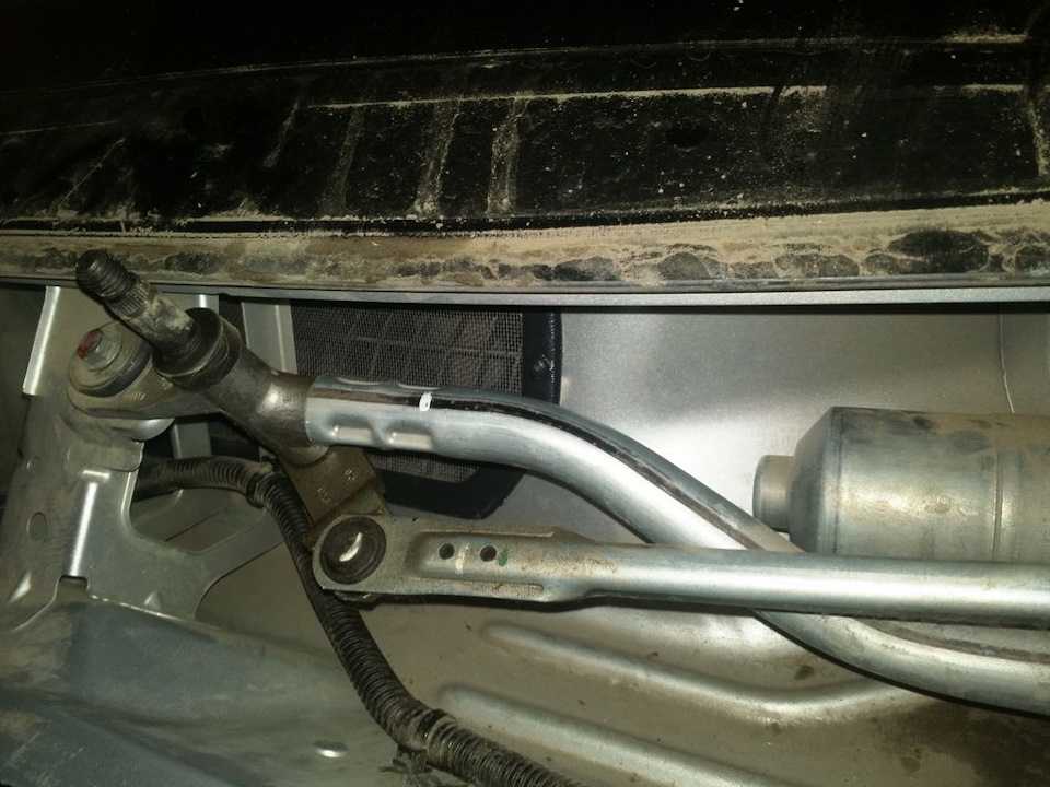 После снятия дворников, остается только демонтировать пластиковое жабо перед лобовым стеклом. Оно крепится 6-ю болтами Torx Т20 – по 3 на каждую сторону. Они выкручиваются без проблем, после чего остается только снять жабо.