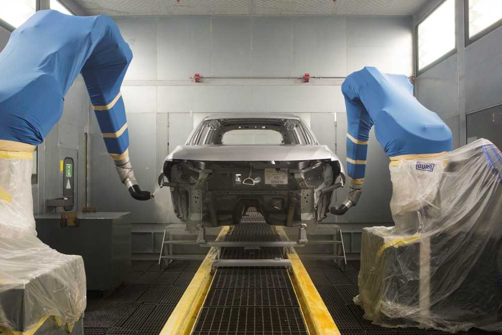 К покраске автомобиля приступают после окончания нанесения грунта. Поэтапно, авто готовят к процедуре покраски. Так как покраска делается аэрозолем в несколько слоев, используется труд роботов. На поверхность наносится раствор, укрепляющий швы и защищающий кузов от коррозии. Потом используется шумоизоляционная мастика, добавляющая машине тишины на дорогах.