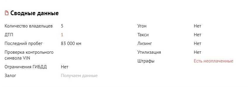 Судя по штрафам, водитель мало что слышал об аккуратности на дорогах, а значит и машина могла неплохо износиться. Смущает количество владельцев. Если авто сменили пять человек, возможно, с ним что-то не так. Однако об этом стоит лишь догадываться.