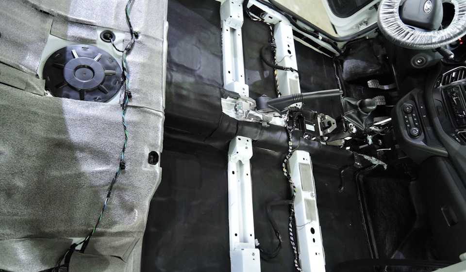 Из салона выносятся сидения, ковры, центральная консоль и обшивки. В этом случае обычно укладывают три слоя материалов: