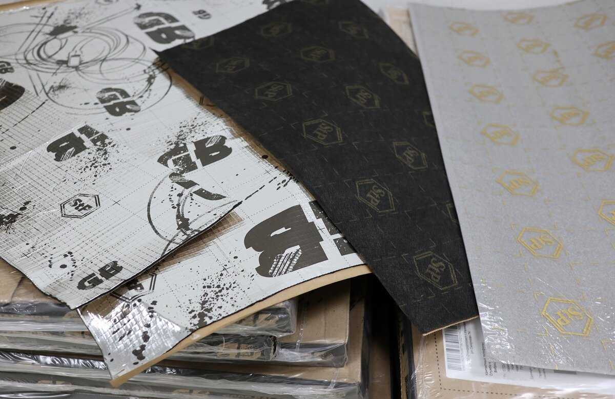- Первый слой — вибропоглощающий материал GB толщиной 3 мм;