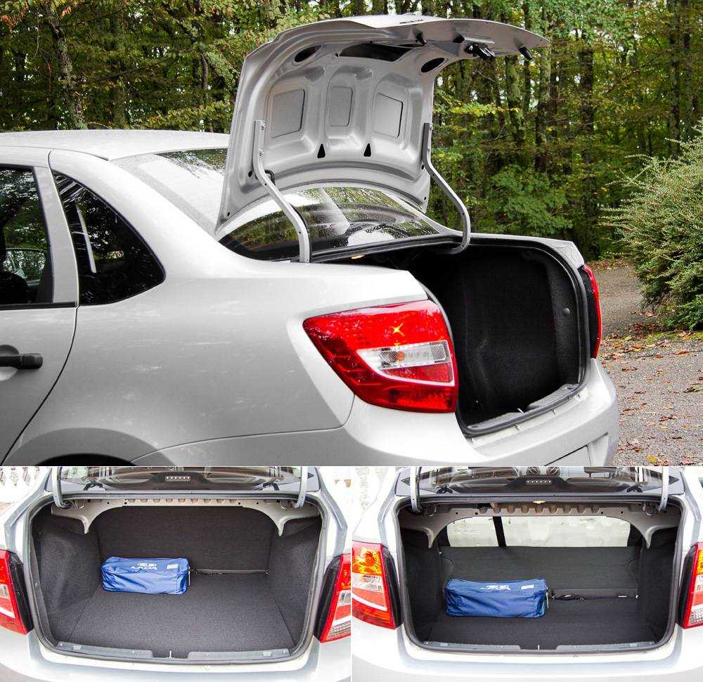 Багажное отделение отечественного автомобиля имеет объем в 480 л. Оно открывается специальной кнопкой, расположенной внутри салона. Благодаря откидному заднему сиденью вместимость багажника можно увеличить еще больше, но стоит учесть, что это создаст значительные неудобства для водителя и переднего пассажира.