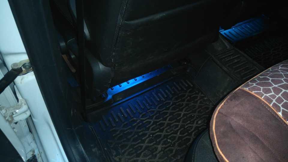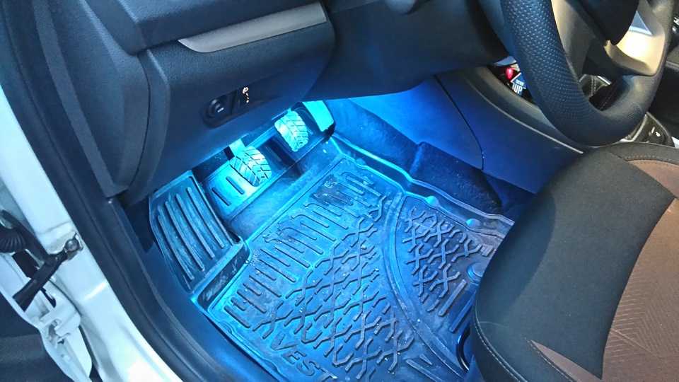 При отсутствии освещения света данной зоны, водитель машины сможет установить подсветку для ног самостоятельно, если посчитает нужным. Чтобы выполнить такую процедуру, не потребуются большие затраты. Водителю понадобится лишь отрезок светодиодной ленты. Перед покупкой ленты, решите, какого цвета и мощности свет хотите.