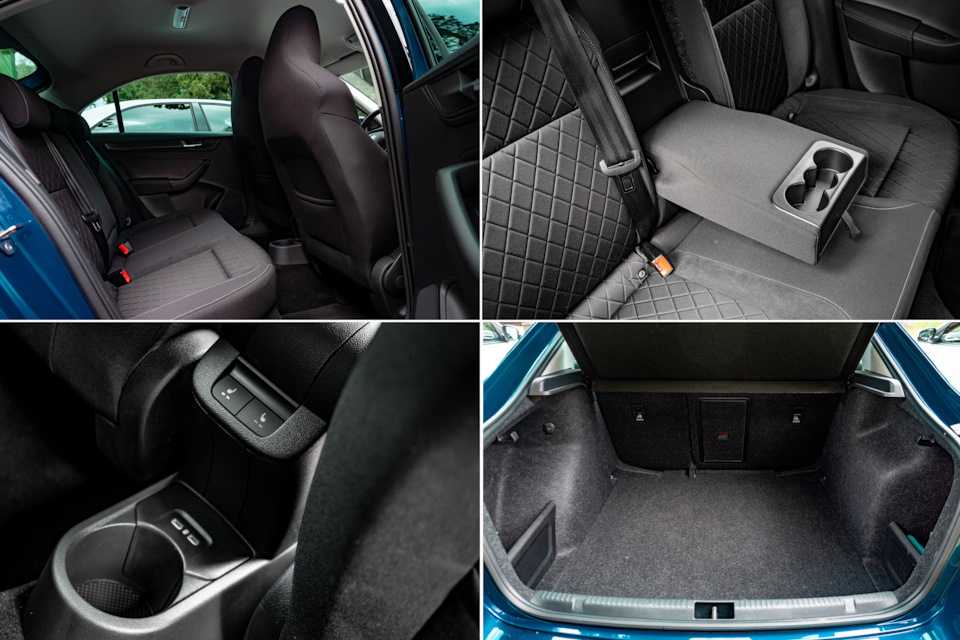 Škoda заявляет, что объём багажника лифтбека — 550 литров. При складывании кресел ровного пола не образуется, зато сиденье разделено на три части, против двух у Kia. При замерах по методике журнала “За рулём” в багажник Рапида уместилось 460 литров.