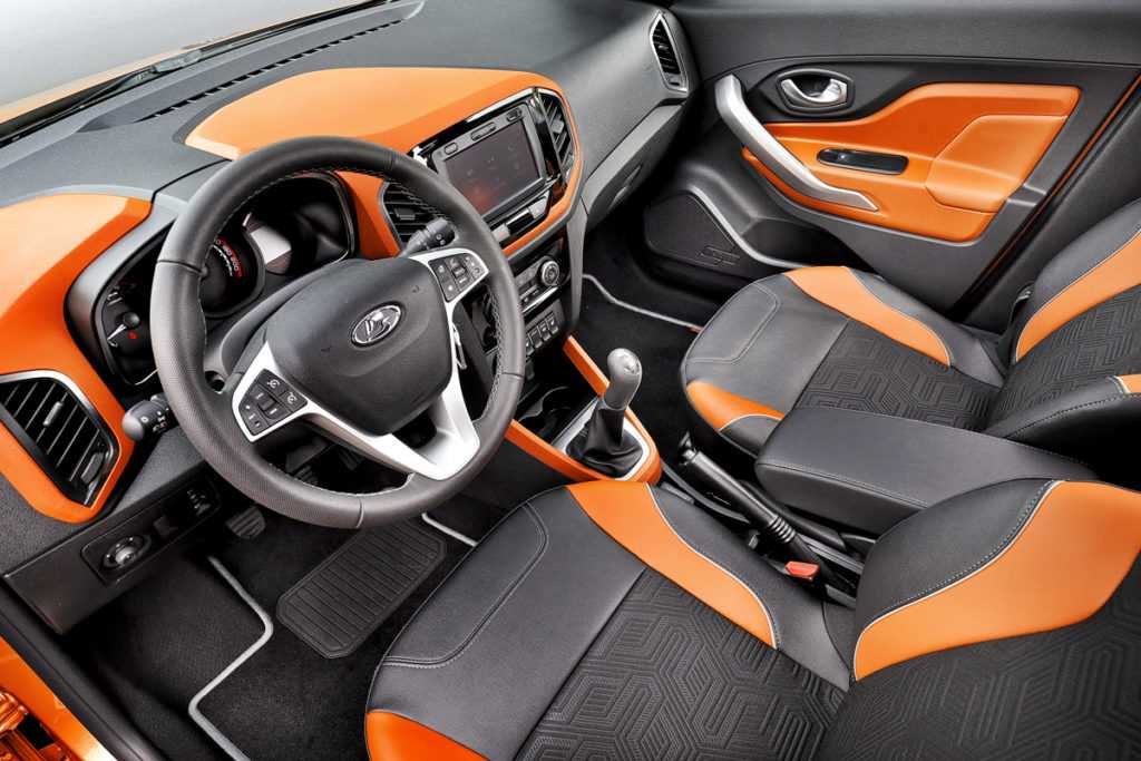 Салон у XRay имеет двухцветное исполнение. Внутри кросс-хэтча в топовом исполнении предусматривается комбинированная отделка: сидения, передняя панель и дверные карты содержат контрастные вставки. Центральная консоль отведена под ставшие уже классическими блоки управления мультимедией и климатом. А трансмиссионный тоннель занимает лишь рычаг КПП. Среди примечательных деталей салона следует отметить передние кресла с выраженной боковой поддержкой.