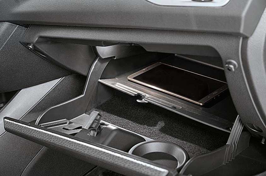 1. В приличном по объему перчаточном ящике есть подстаканник. Сам отсек поделен на два уровня. Крепления Isofix на заднем сиденье идут в базовом варианте оснащения. 2. Рука дизайнера заметна даже на обшивке дверей и на обивке кресел: вставки на панели и обивке сидений — в цвет кузова. 3. Графика щитка приборов четкая, цифры на спидометре сближены.