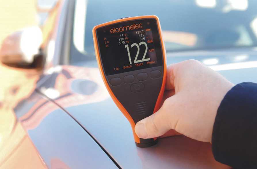 Если машина подвергалась ремонту, на детали наносилась шпаклевка, то толщина слоя покрытия увеличится до 180-200 мкм и более. Проверять подобные отклонения нужно специальным прибором для измерения краски – толщиномером. Такие устройства позволяют с высокой точностью замерить слой ЛКП на изделиях из металла, пластика, стекла.