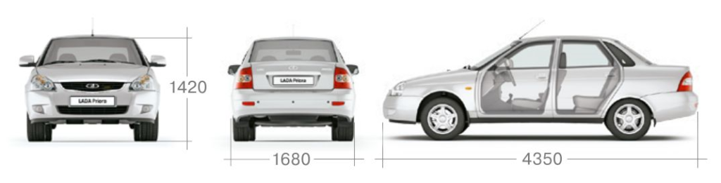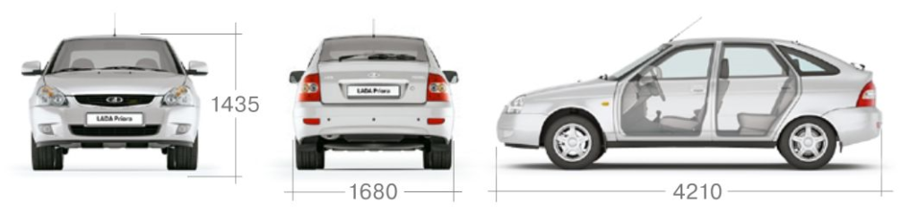 Во всех четырех случаях ширина Приоры одна и та же – 1680 мм