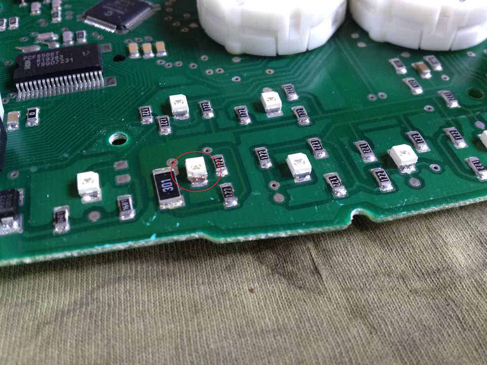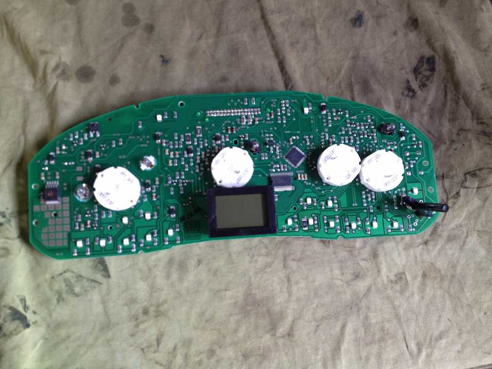 Ну что делать, диод припаяли, панель собрали, ну и естественно лампочка загорелась и горела перманентно.Этого я и ждал, так и должно быть, дальше искать проблемы с ПБ.Но проездив два дня я увидел, что перегорела или потеряла контакт лампочка подсветки приборки, думаю тьфу, проверю, поменяю.Залез, поменял, всё загорелось поставил на место и что вижу.Приборка вся подсвечивается, загораются лампочки, а моторы стрелок и БК не реагирует никак — БК не показывает, стрелки по нулям.Приехали.Путём тестов выяснилось, что всё живо на панели, кроме контроллера, отвечающего, как раз за БК и стрелки.